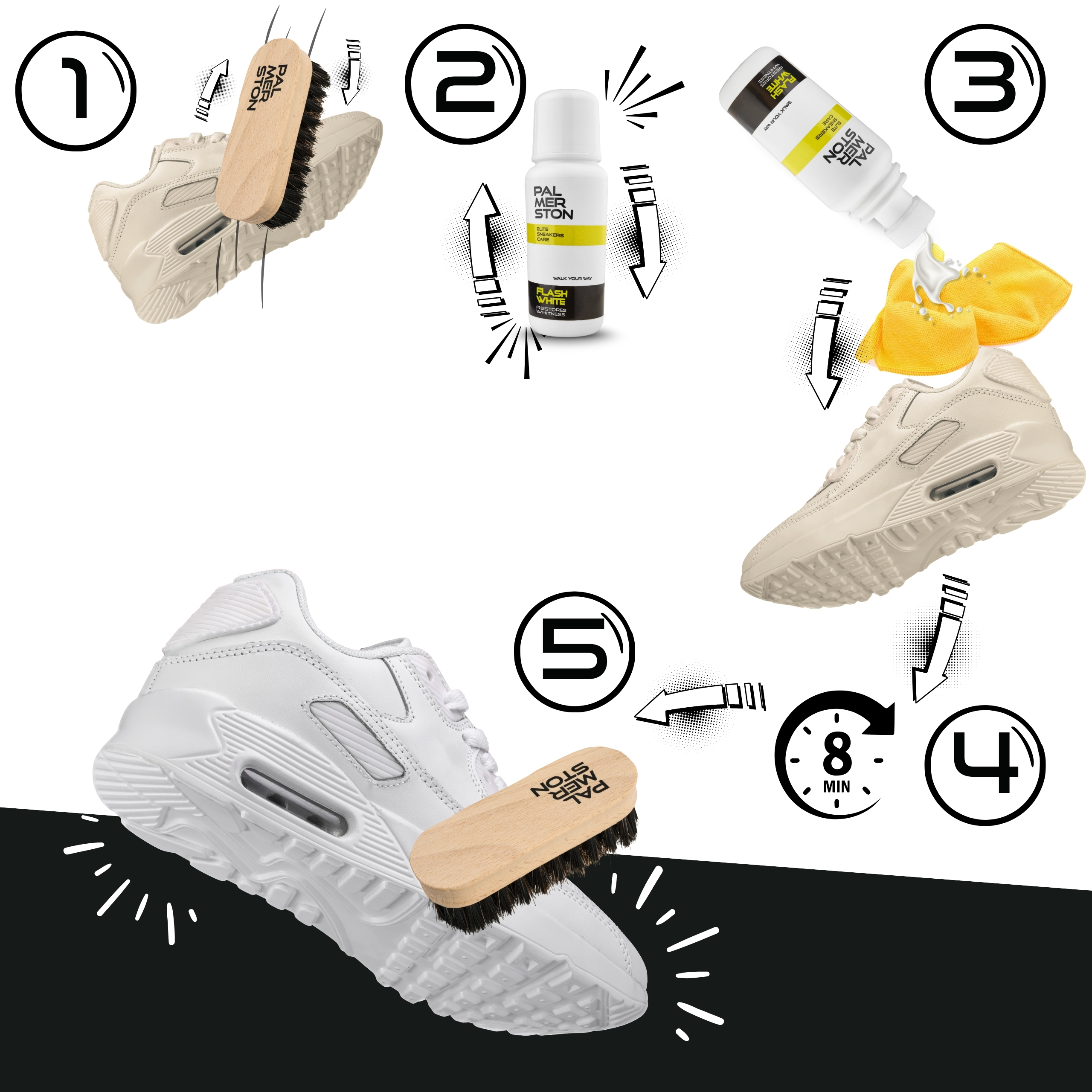 Masz dość, gdy Twoje ulubione białe sneakersy tracą swój blask? Palmerston FlashWhite to Twój strażnik bieli, który przywraca im dawny styl. To proste rozwiązanie w tubce 75g z gąbkowym aplikatorem, które załatwi problem zbrudzeń i nada butom świeży wygląd. Koniec z szarą codziennością, czas na perfekcyjną biel!