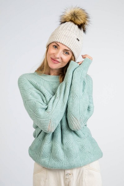 Beżowa czapka damska z eko-pomponem to idealny wybór na chłodne jesienne wieczory i zimowe dni. Wykonana z miękkiej przędzy (85% akryl, 15% poliamid), czapka zapewnia ciepło i wygodę, nawet bez polarowego podszycia. Stylowy wzór plecionki i wywinięcie dodają elegancji, a futerkowy pompon z długiego włosa podkreśla zimowy charakter czapki. Doskonale pasuje zarówno do eleganckiego płaszcza, jak i do ciepłej, puchowej kurtki.