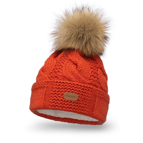 Pomarańczowy komplet damski na zimowe dni składający się z klasycznej czapki z wywinięciem i futerkowym pomponem oraz komina do owinięcia na dwa razy. Czapka jest podszyta miękkim polarem, zapewniając dodatkowe ciepło i komfort. Idealny wybór na zimowe spacery, kiedy chcesz wyglądać elegancko i czuć się przytulnie. Komplet wykonany z mieszanki - 51% wełna jagnięca, 49% bawełna.