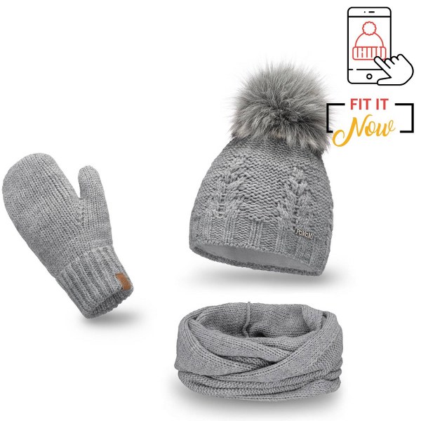 Jasnoszary komplet damski PaMaMi to idealny wybór dla kobiet, które cenią sobie zarówno styl, jak i funkcjonalność. Zestaw zawiera stylową czapkę z futerkowym pomponem, otulający komin na dwa razy oraz rękawiczki. Wykonany z miękkiego materiału akrylowego, zapewnia ciepło nawet w najchłodniejsze dni. Polarowe podszycie czapki nie tylko zwiększa komfort noszenia, ale także chroni przed zimnem. Komin z kompletu jest na tyle długi, że można go wygodnie owinąć wokół szyi dwa razy. Taki sposób noszenia nie tylko dodaje uroku, ale również zapewnia dodatkową ochronę przed chłodem. Rękawiczki są delikatne dla skóry i nie krępują ruchów dłoni.