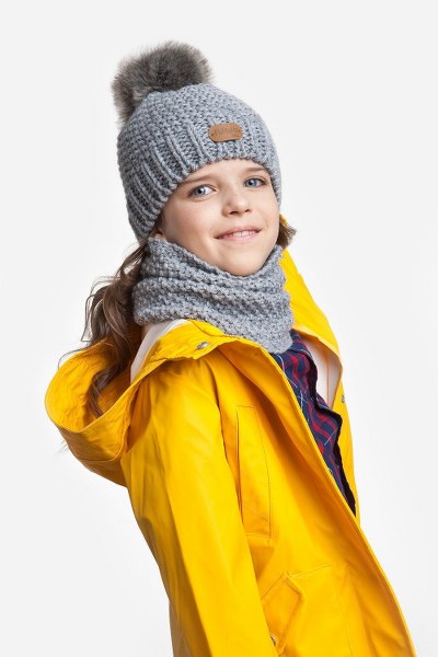 Fioletowy komplet dziecięcy, idealny dla dzieci w wieku 3-7 lat. Wykonany z mieszanki 85% akrylu i 15% poliamidu. W skład zestawu wchodzi ciepła czapka z futerkowym pomponem oraz wygodny komin. Czapka ma standardowy krój, lekko przedłużony, co zapewnia doskonałe dopasowanie do głowy, a polarowe podszycie gwarantuje dodatkowe ciepło. Komin wokół szyi, zapewnia maksymalną ochronę przed zimnem podczas zimowych spacerów.