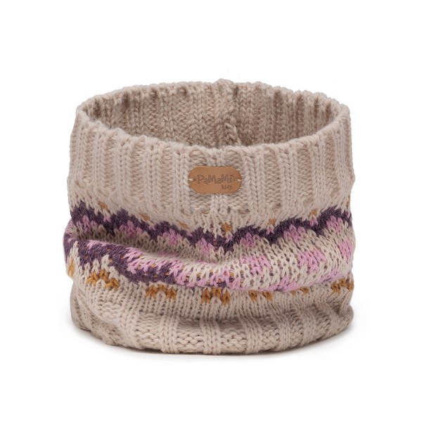 Komplet dziecięcy w kolorze vanilia, składający się z czapki z kolorowymi wzorkami oraz pomponem i dopasowanego komina. Czapka została podszyta miękkim polarem, co zapewnia ochronę przed mrozem nawet w najchłodniejsze dni. Komin typu tuba otula szyję, gwarantując ciepło i komfort noszenia. Dzięki zastosowaniu delikatnych materiałów, zestaw jest przyjazny dla skóry dziecka, nie powodując podrażnień.