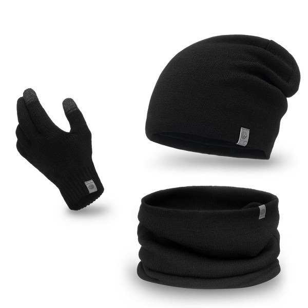 Czarny komplet męski, który obejmuje przedłużaną czapkę typu smerfetka, komin oraz rękawiczki. Czapka, podszyta miękkim polarem na wysokości 18 cm, zapewnia ciepło i komfort podczas zimowych spacerów. Polarowa powłoka antystatyczna zapobiega elektryzowaniu się włosów. Komin typu tuba idealnie dopasowuje się do szyi, zapewniając wygodę noszenia. Rękawiczki ochronią Twoje dłonie przed chłodem. Ten zestaw to idealne rozwiązanie na zimowe spacery, gwarantujące ciepło i styl.