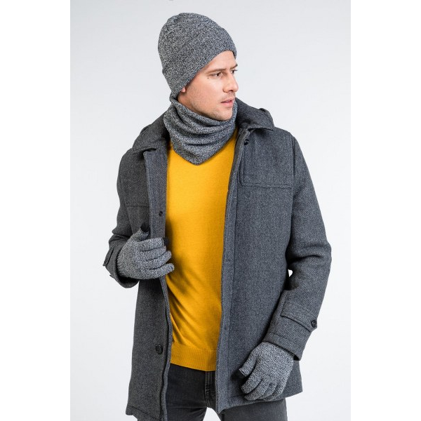 Komplet męski w kolorze granatowa mulina, składający się z czapki z wywinięciem, komina typu tuba i rękawiczek, to doskonały wybór na chłodne dni. Wykonany w 100% z akrylu, zapewnia ciepło i komfort podczas zimowych spacerów. Czapka chroni uszy przed wiatrem, a jej klasyczny krój z wywinięciem dodaje stylu. Luźny komin tuba zapewnia ochronę szyi, a rękawiczki z funkcją obsługi ekranów dotykowych umożliwiają wygodne korzystanie z telefonu. Uniwersalny styl kompletu sprawia, że pasuje zarówno do eleganckiego płaszcza, jak i sportowej kurtki.