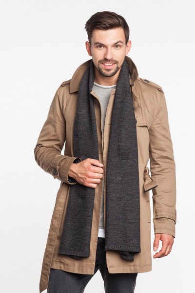 Granatowy elegancki szalik męski to doskonały wybór na zimowe dni. Wykonany w 100% z akrylu, zapewnia ciepło i komfort, nie drapiąc skóry. Jego uniwersalny styl pasuje zarówno do płaszcza, jak i kurtki jeansowej, dzięki czemu świetnie komponuje się z różnymi stylizacjami. Szalik o wymiarach 180 cm długości i 40 cm szerokości można łatwo zawiązać wokół szyi, chroniąc ją przed zimnem i wiatrem. Idealny na prezent dla każdego mężczyzny.